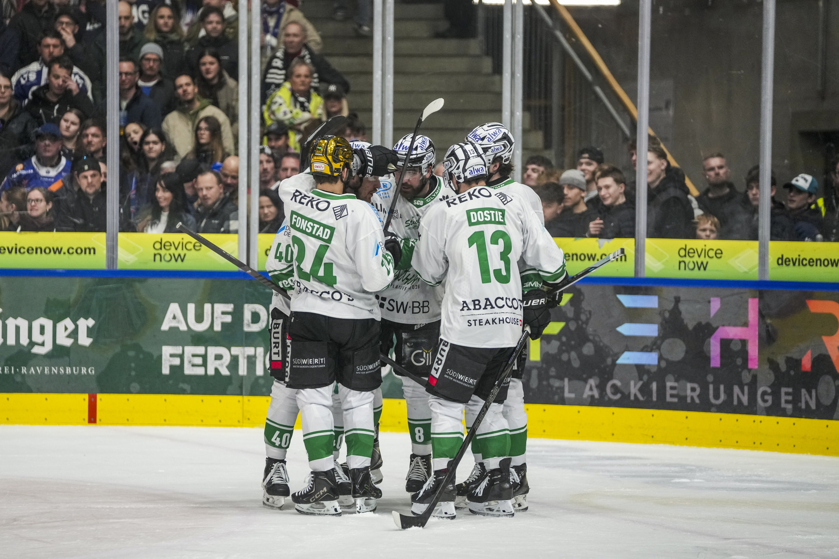 Torjubel zum 0:2, GER, Ravensburg Towerstars vs. Bietigheim Steelers, Eishockey, DEL2, Spielzeit 2025/2026, Playoff Viertelfinale, Spiel 3, 22.03.26 Foto: Maximilian Rist
