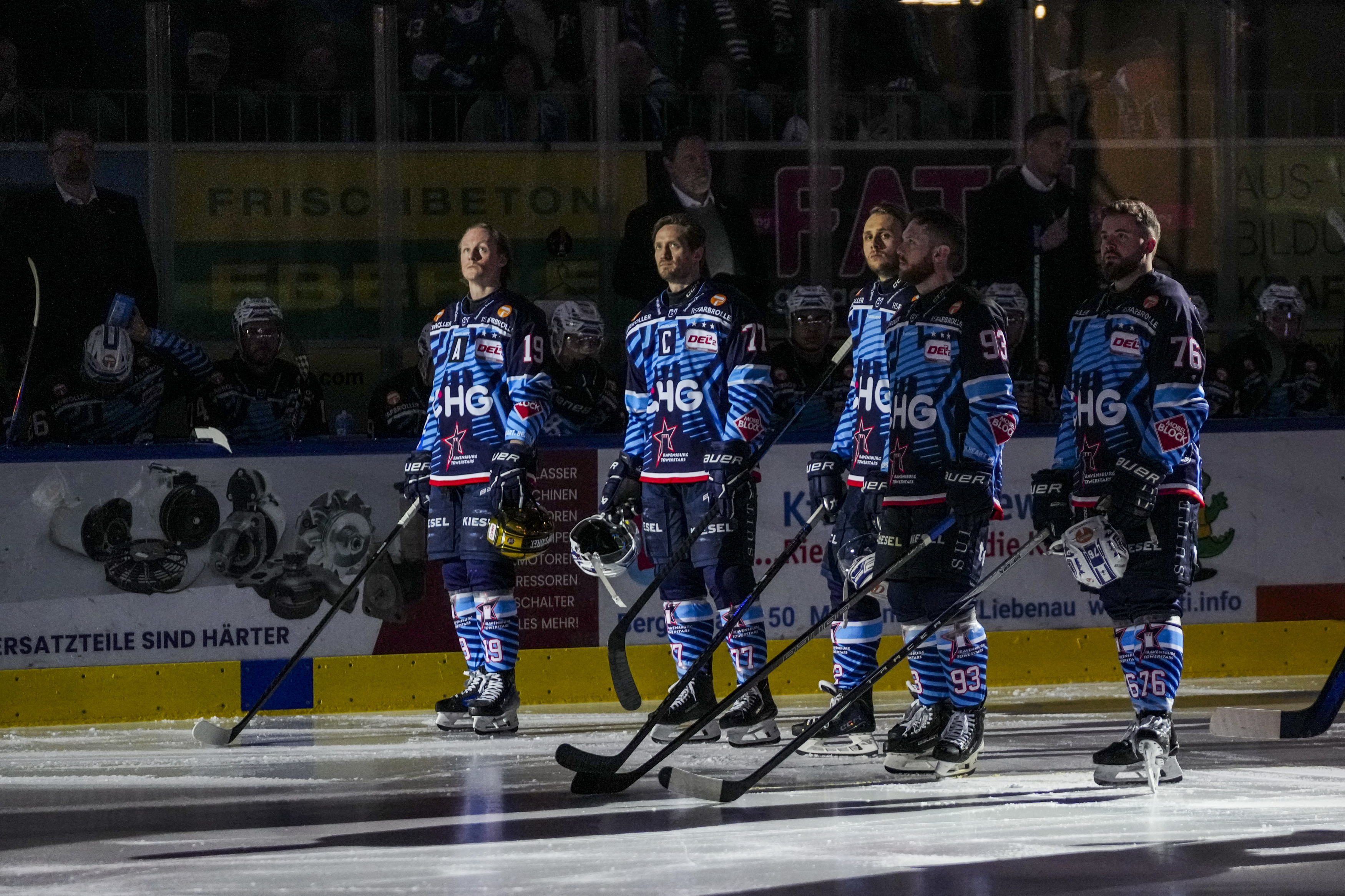 Starting Six Towerstars, GER, Ravensburg Towerstars vs. Bietigheim Steelers, Eishockey, DEL2, Spielzeit 2025/2026, Playoff Viertelfinale, Spiel 3, 22.03.26 Foto: Maximilian Rist