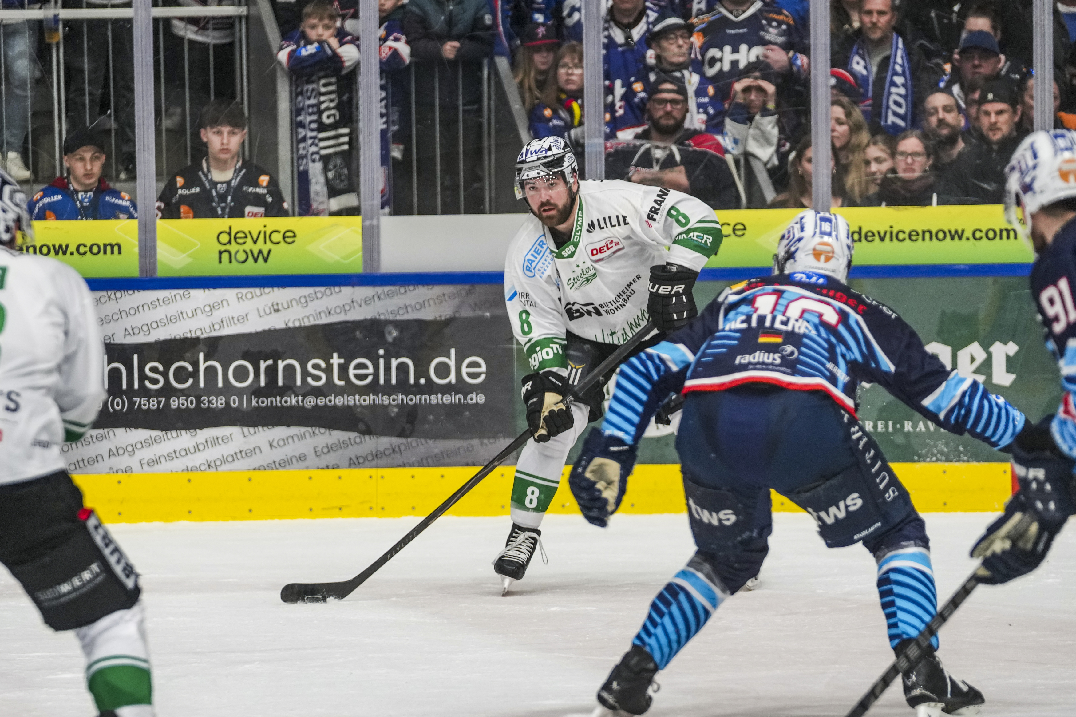 Jack Dugan (Bietigheim Steelers, #8), GER, Ravensburg Towerstars vs. Bietigheim Steelers, Eishockey, DEL2, Spielzeit 2025/2026, Playoff Viertelfinale, Spiel 3, 22.03.26 Foto: Maximilian Rist , GER, Ravensburg Towerstars vs. Bietigheim Steelers, Eishockey, DEL2, Spielzeit 2025/2026, Playoff Viertelfinale, Spiel 3, 22.03.26 Foto: Maximilian Rist