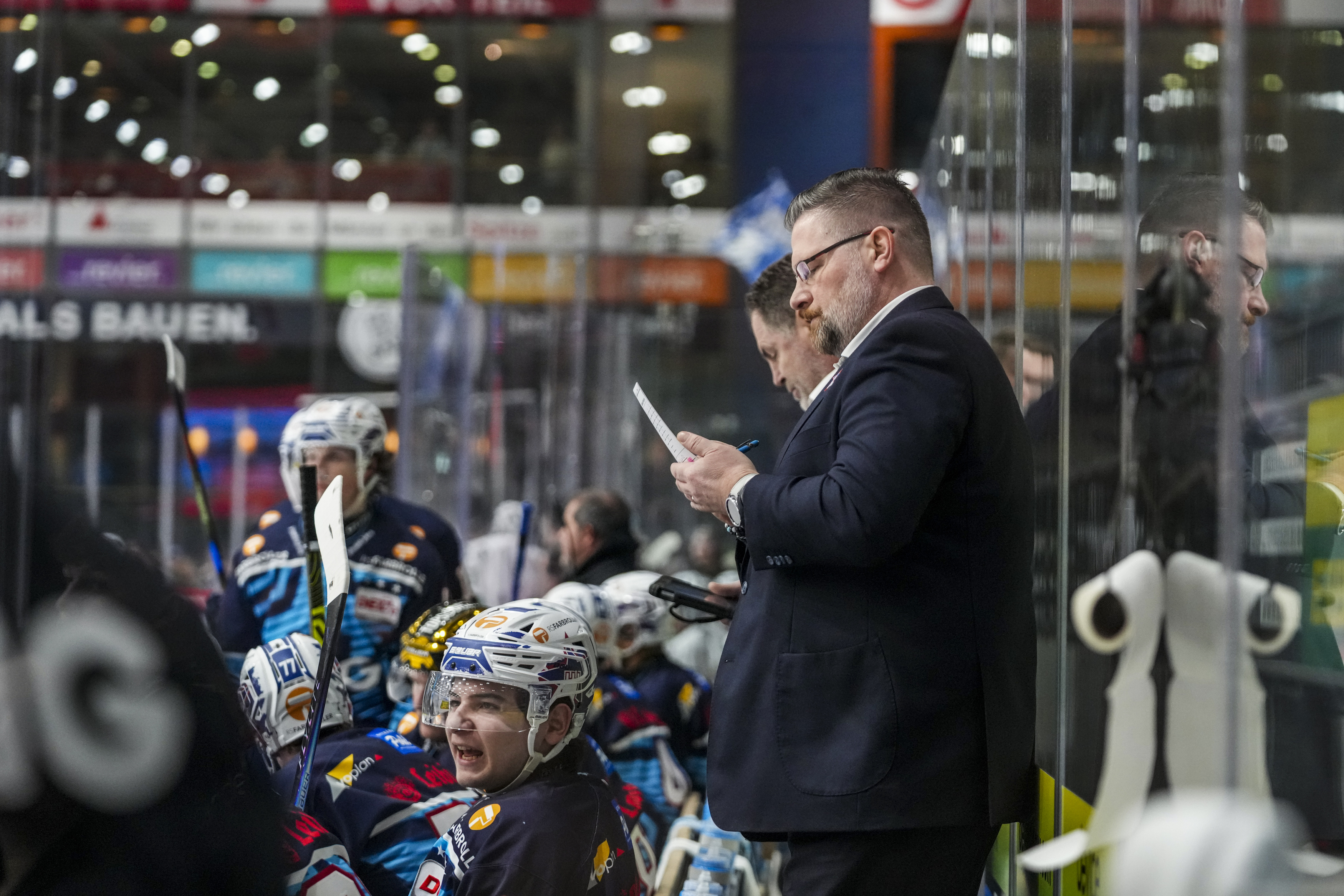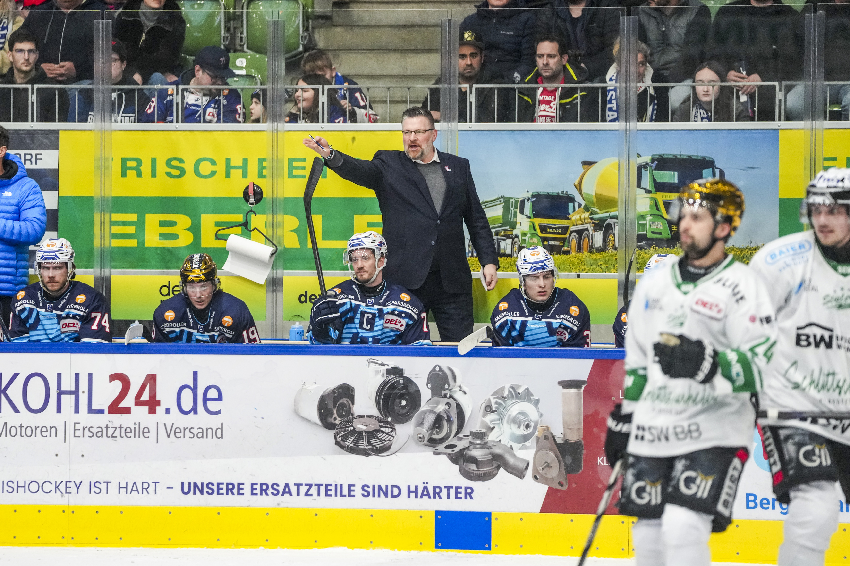 Alexander Dueck (Bietigheim Steelers, Chef-Trainer), GER, Ravensburg Towerstars vs. Bietigheim Steelers, Eishockey, DEL2, Spielzeit 2025/2026, Playoff Viertelfinale, Spiel 3, 22.03.26 Foto: Maximilian Rist , GER, Ravensburg Towerstars vs. Bietigheim Steelers, Eishockey, DEL2, Spielzeit 2025/2026, Playoff Viertelfinale, Spiel 3, 22.03.26 Foto: Maximilian Rist