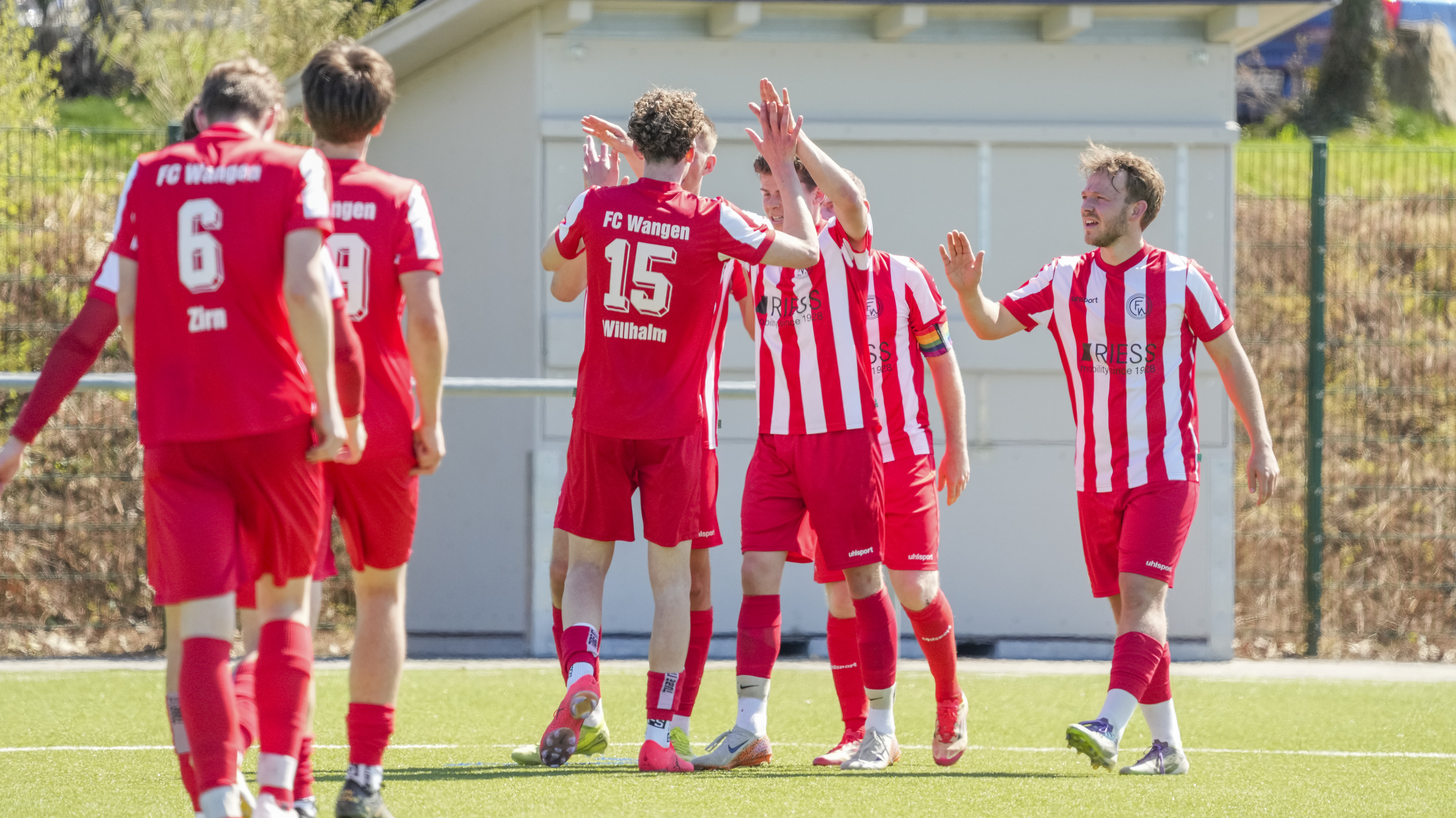 Torjubel zum 2:0, GER, FC Wangen vs. SV Reinstetten, Fussball, Landesliga, 26. Spieltag, Spielzeit 2025/2026, 11.04.26 Foto: Maximilian Rist
