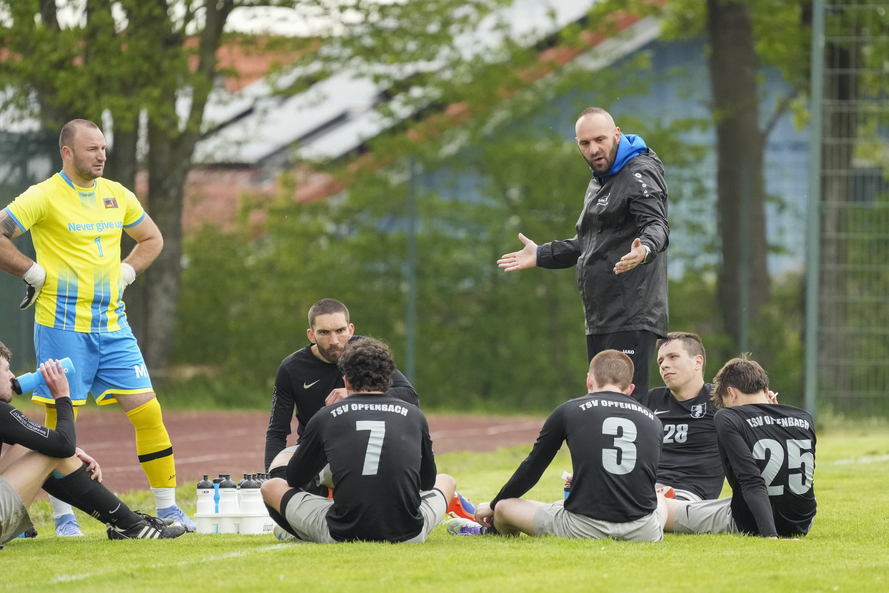 Halbzeitansprache Domba Ionut (TSV Opfenbach, Trainer), GER, TSV Opfenbach vs. SV Deuchelried, Fussball, Kreisliga B6 Bodensee, 16. Spieltag, Spielzeit 2025/2026, 19.04.26 Foto: Maximilian Rist