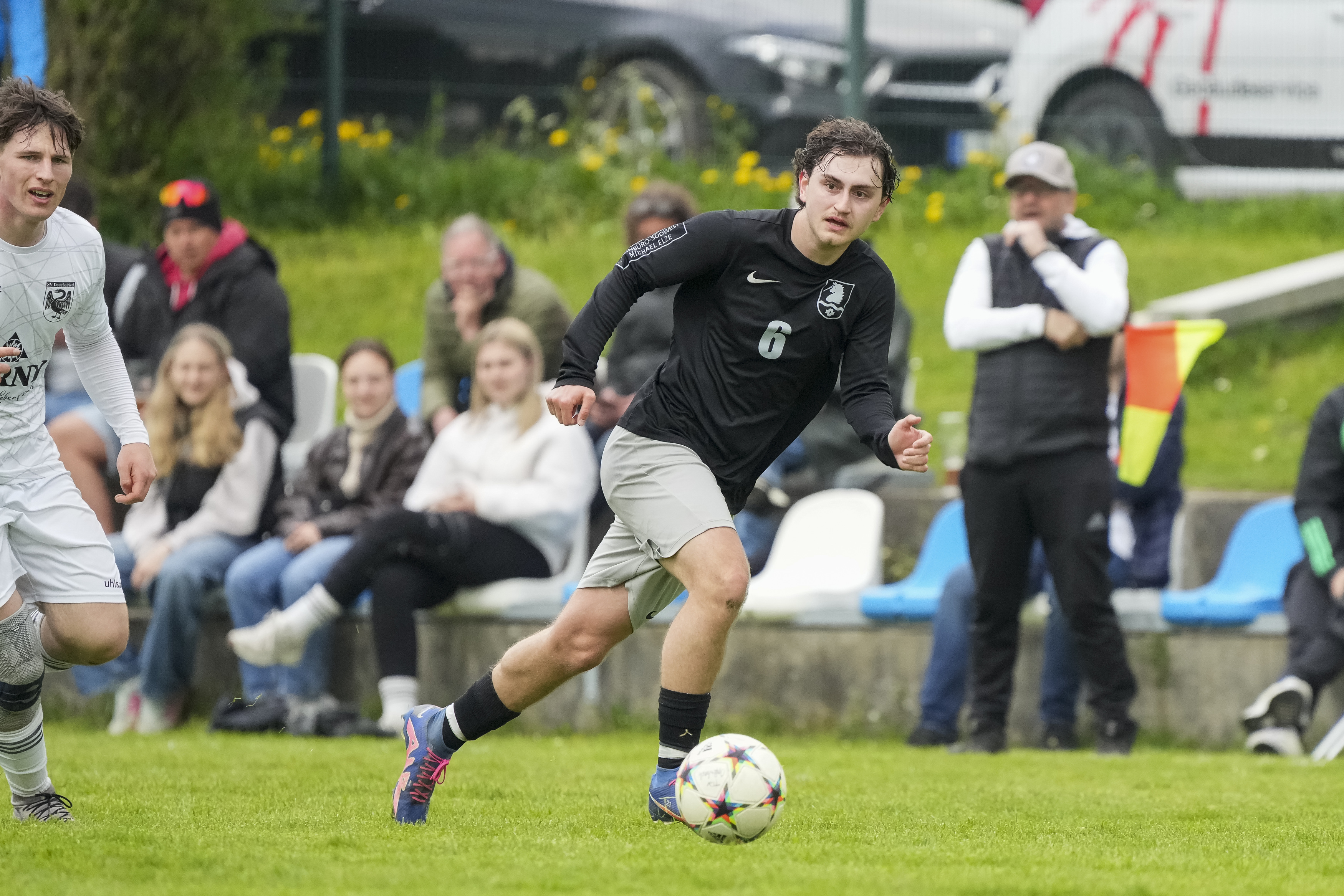 Mick Mueller-Deutschle (TSV Opfenbach, #6) gegen Jonathan Kugler (SV Deuchelried, #10), GER, TSV Opfenbach vs. SV Deuchelried, Fussball, Kreisliga B6 Bodensee, 16. Spieltag, Spielzeit 2025/2026, 19.04.26 Foto: Maximilian Rist