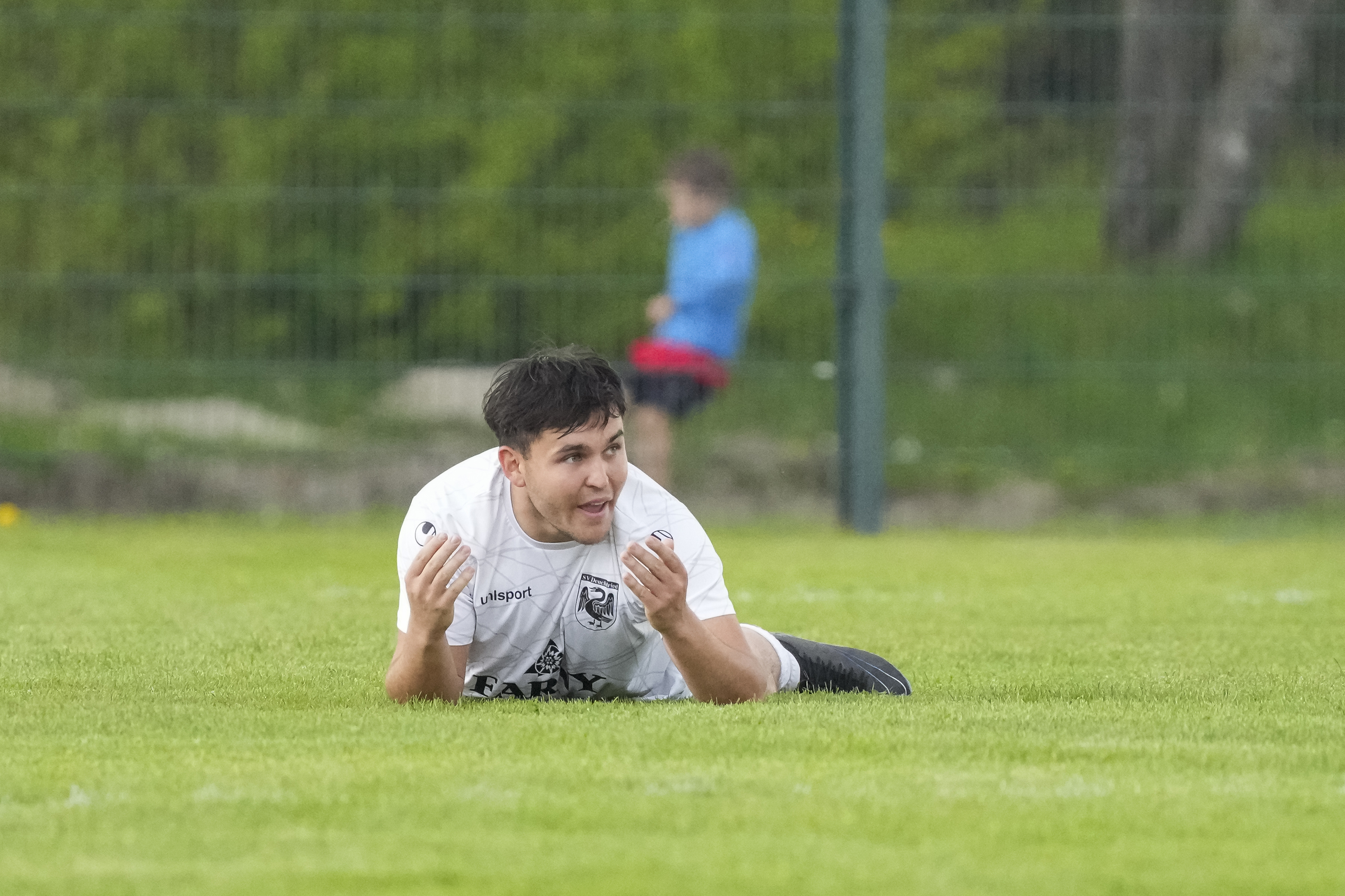 Simon Fackler (SV Deuchelried, #9) reklamiert am Boden, GER, TSV Opfenbach vs. SV Deuchelried, Fussball, Kreisliga B6 Bodensee, 16. Spieltag, Spielzeit 2025/2026, 19.04.26 Foto: Maximilian Rist