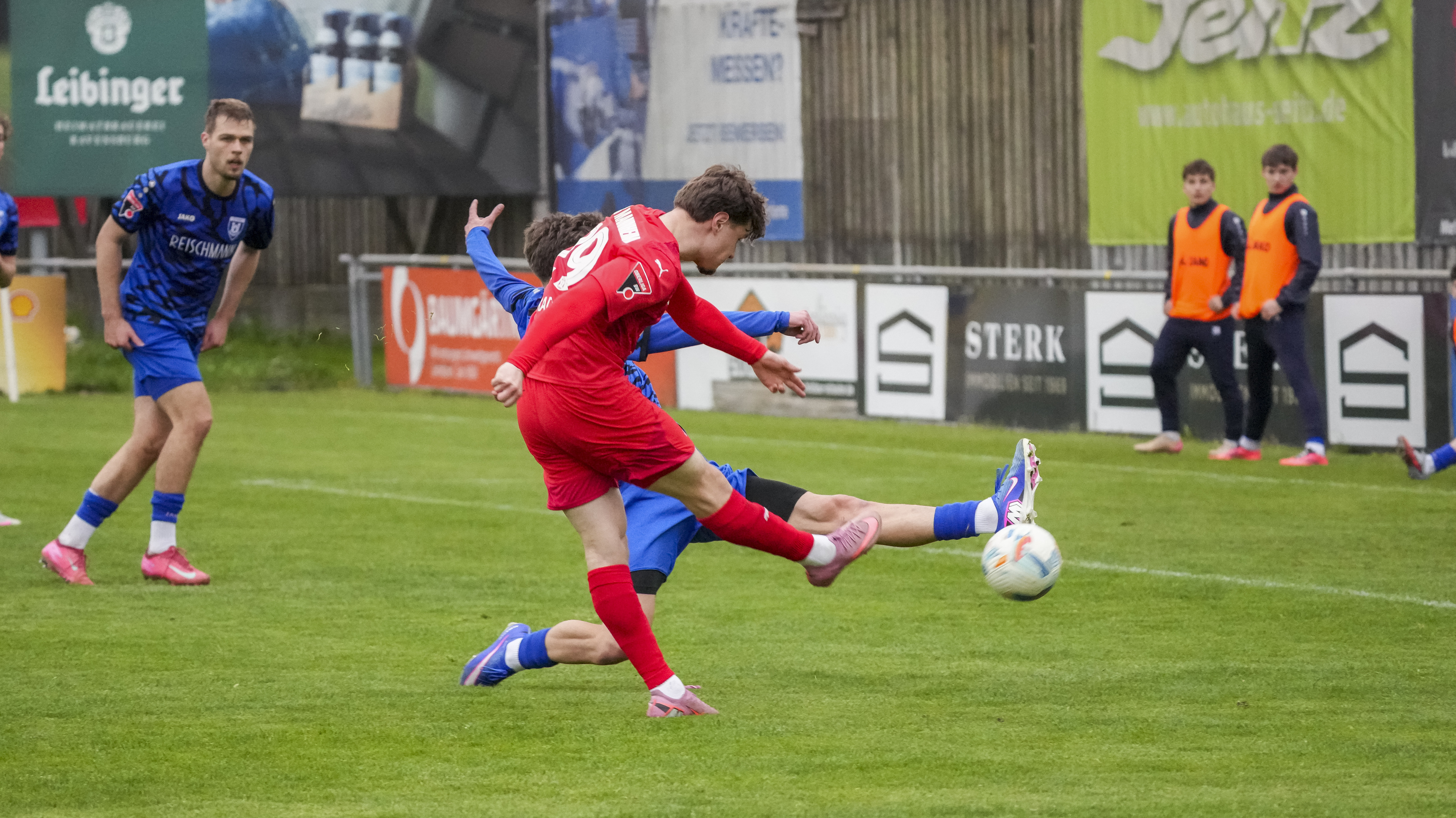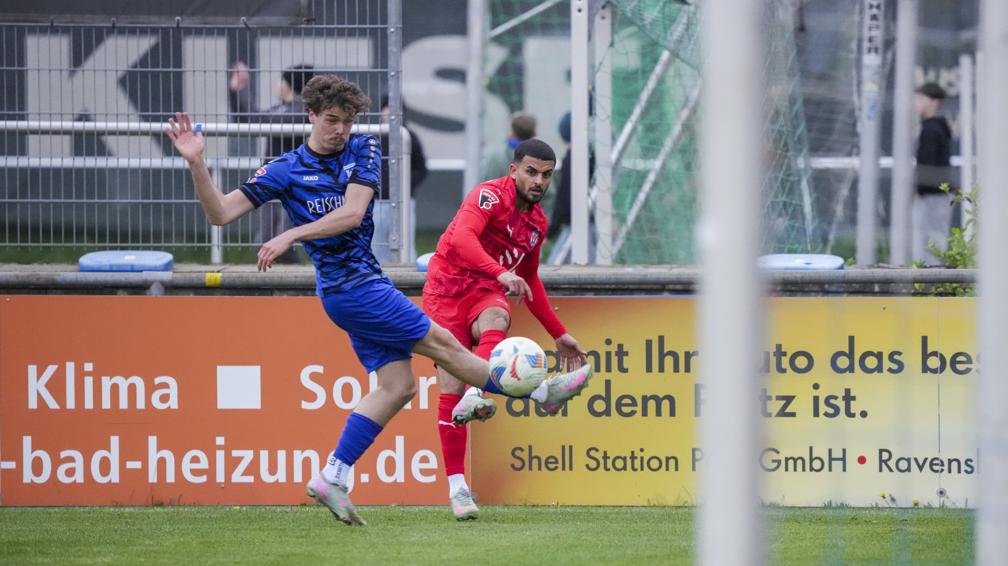 Torchance zum 1:2 durch Marvin Kadner (VfR Mannheim, #29), GER, FV Ravensburg vs. VfR Mannheim, Fussball, Oberliga, 20. Spieltag, Spielzeit 2025/2026, 15.04.26 Foto: Maximilian Rist