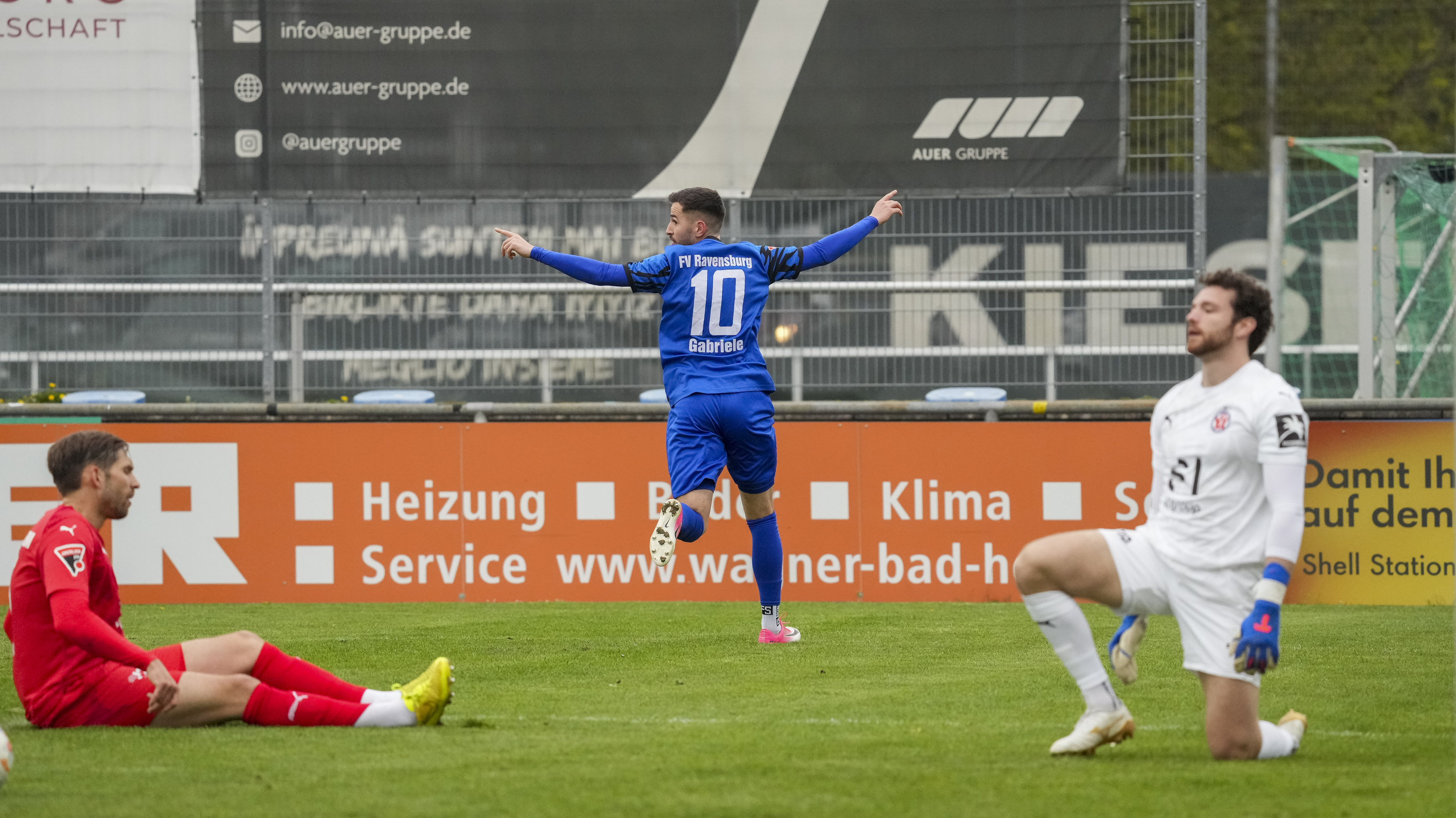 Daniele Gabriele (FV Ravensburg, #10) mit dem Tot zum 1:0, GER, FV Ravensburg vs. VfR Mannheim, Fussball, Oberliga, 20. Spieltag, Spielzeit 2025/2026, 15.04.26 Foto: Maximilian Rist