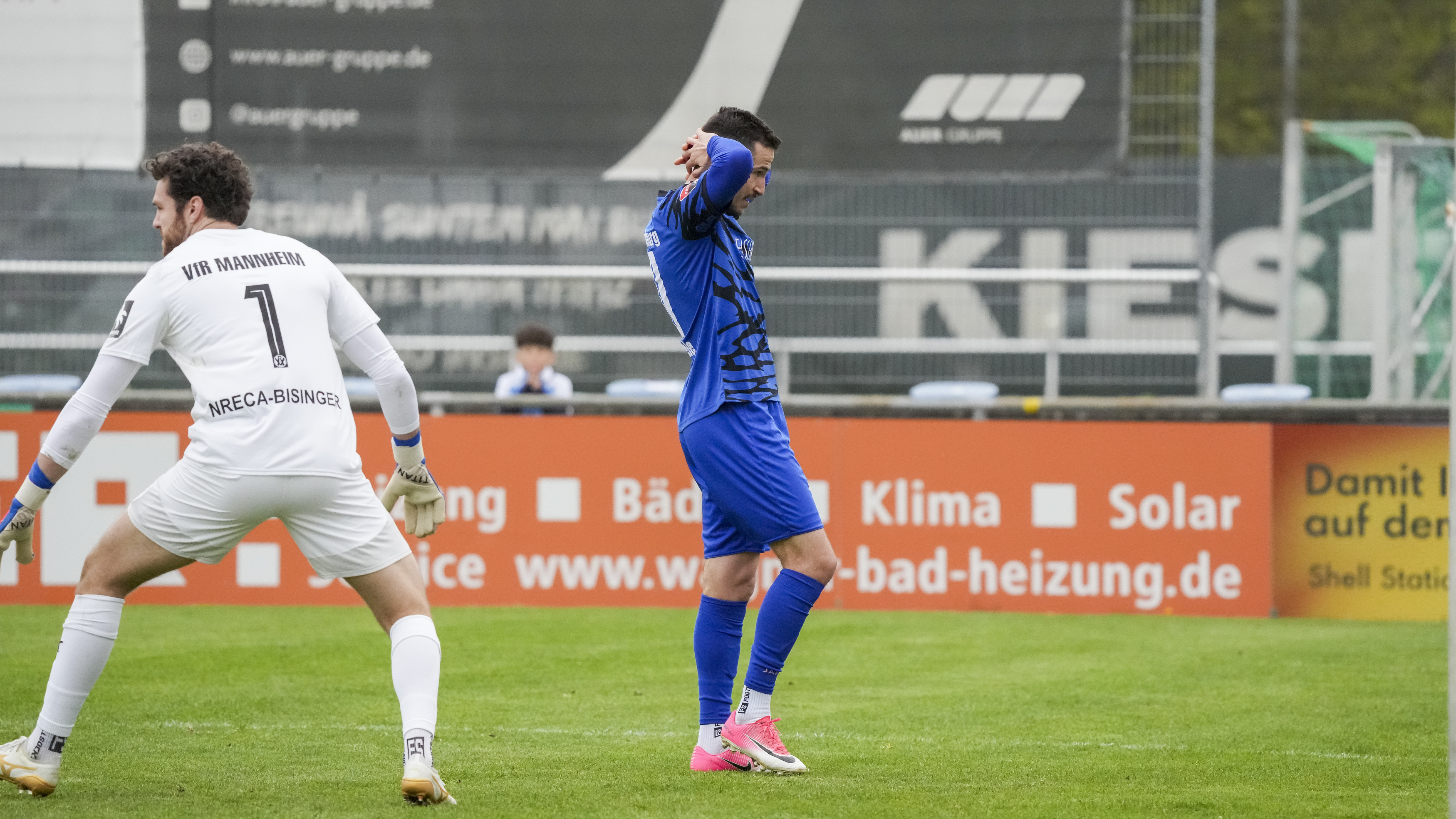 Daniele Gabriele (FV Ravensburg, #10) nach vergebener Torchance, GER, FV Ravensburg vs. VfR Mannheim, Fussball, Oberliga, 20. Spieltag, Spielzeit 2025/2026, 15.04.26 Foto: Maximilian Rist