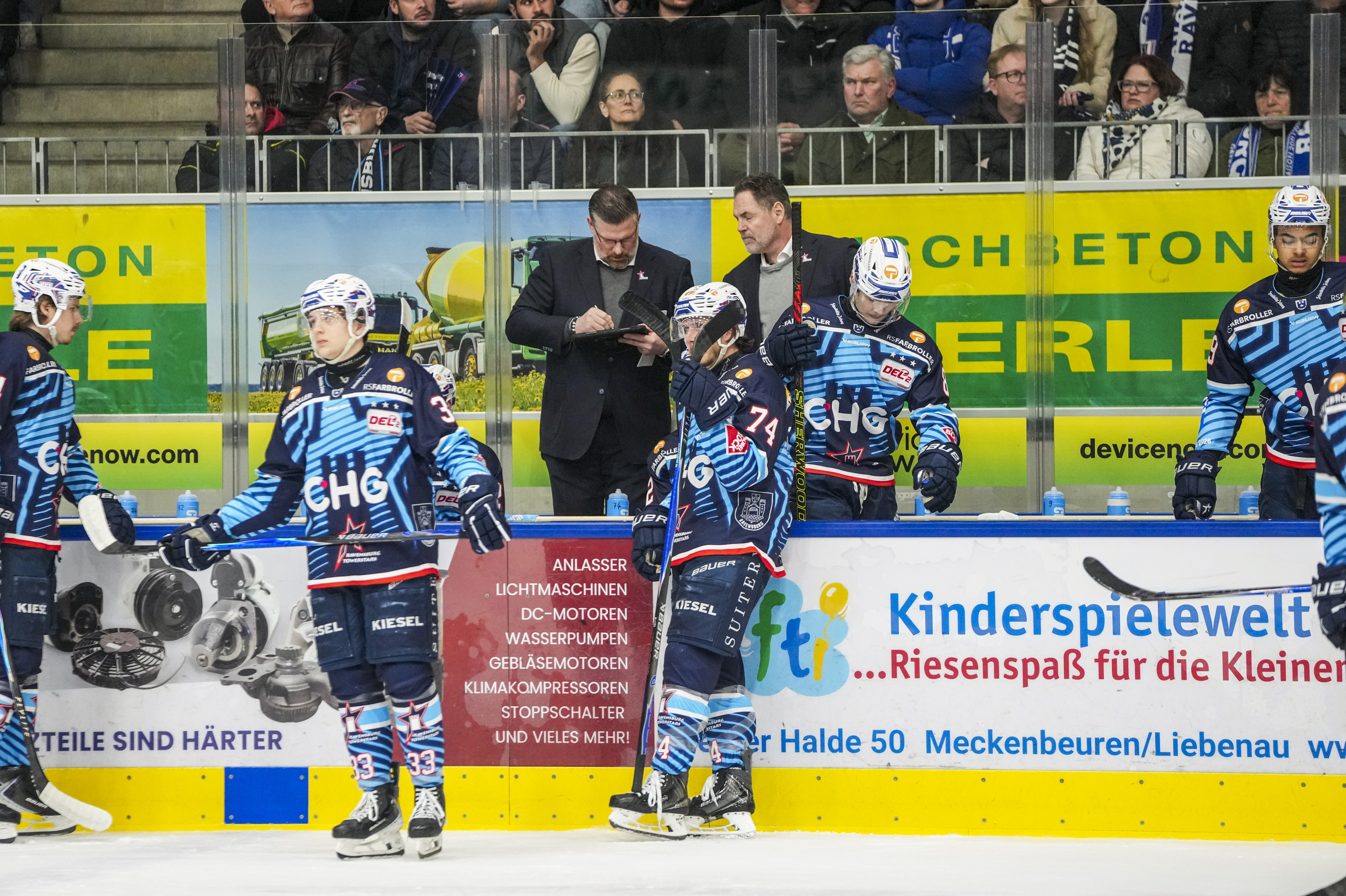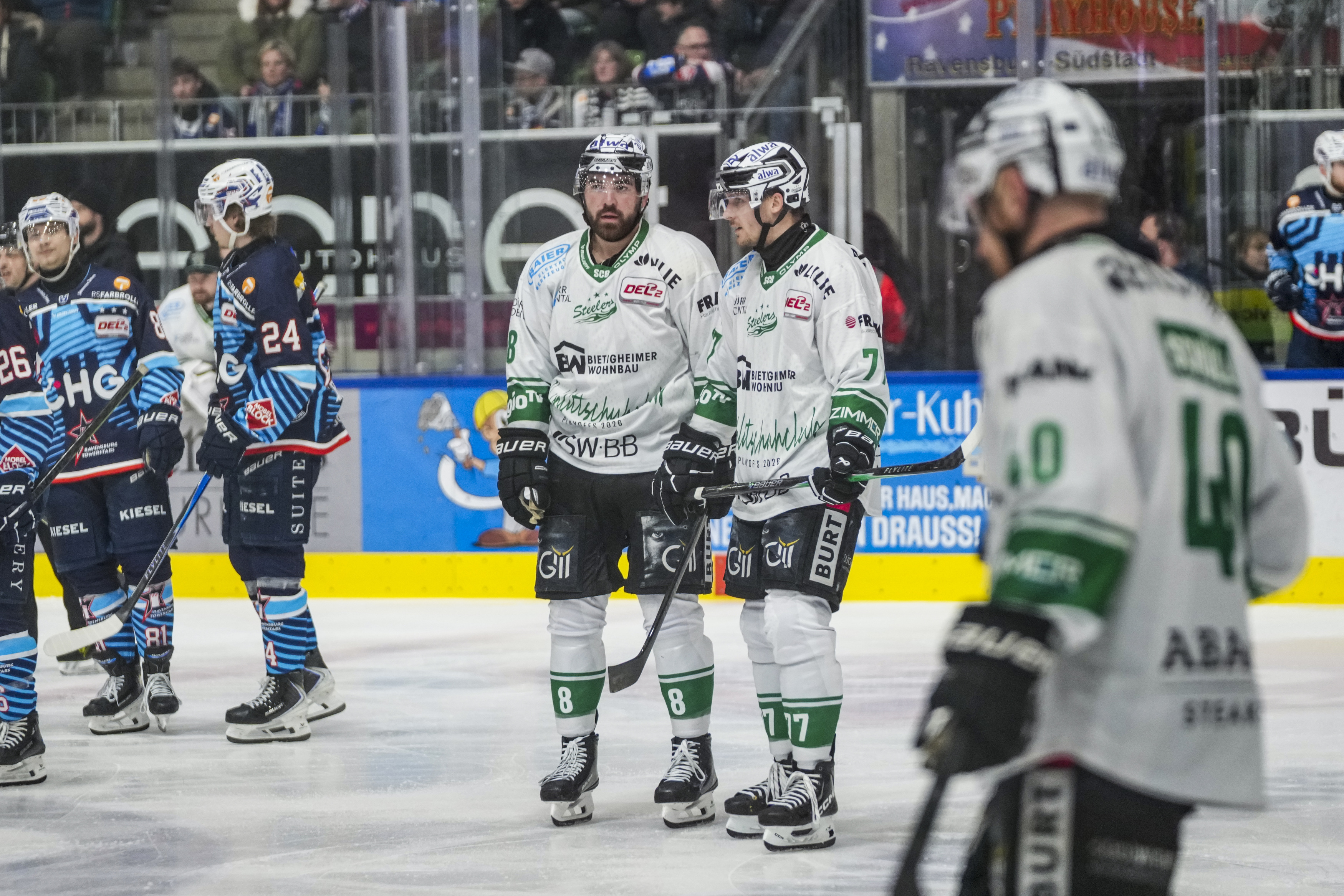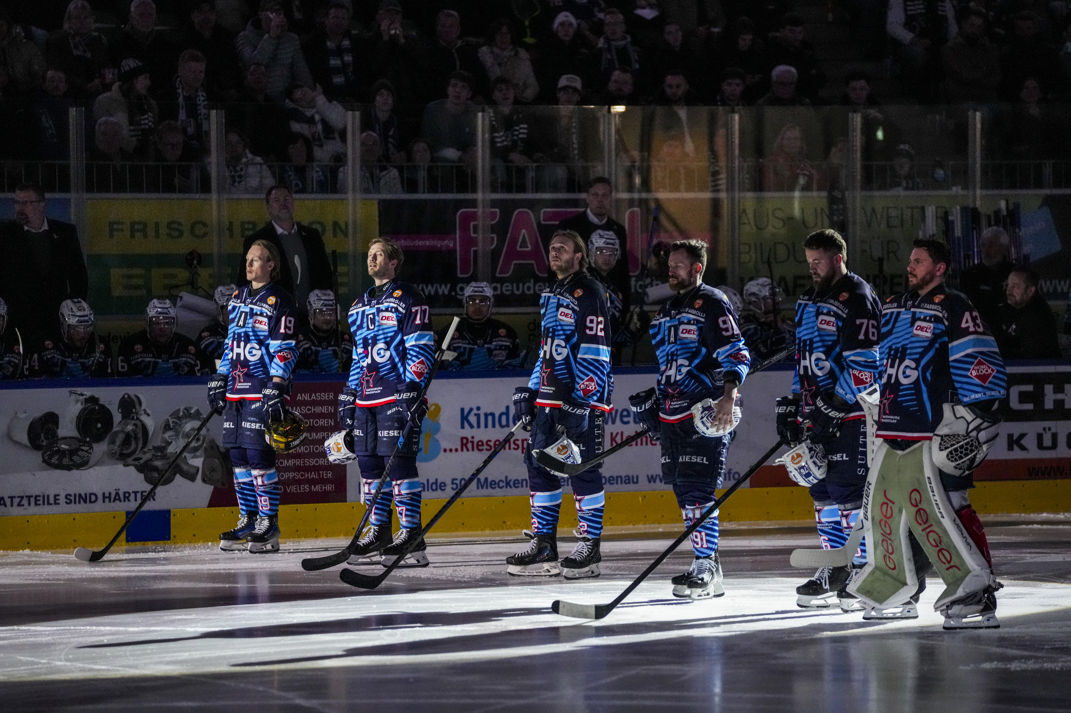 Starting Six Towestars, GER, Ravensburg Towerstars vs. Bietigheim Steelers, Eishockey, DEL2, Spielzeit 2025/2026, Playoff Viertelfinale, Spiel 5, 27.03.26 Foto: Maximilian Rist , GER, Ravensburg Towerstars vs. Bietigheim Steelers, Eishockey, DEL2, Spielzeit 2025/2026, Playoff Viertelfinale, Spiel 5, 27.03.26 Foto: Maximilian Rist