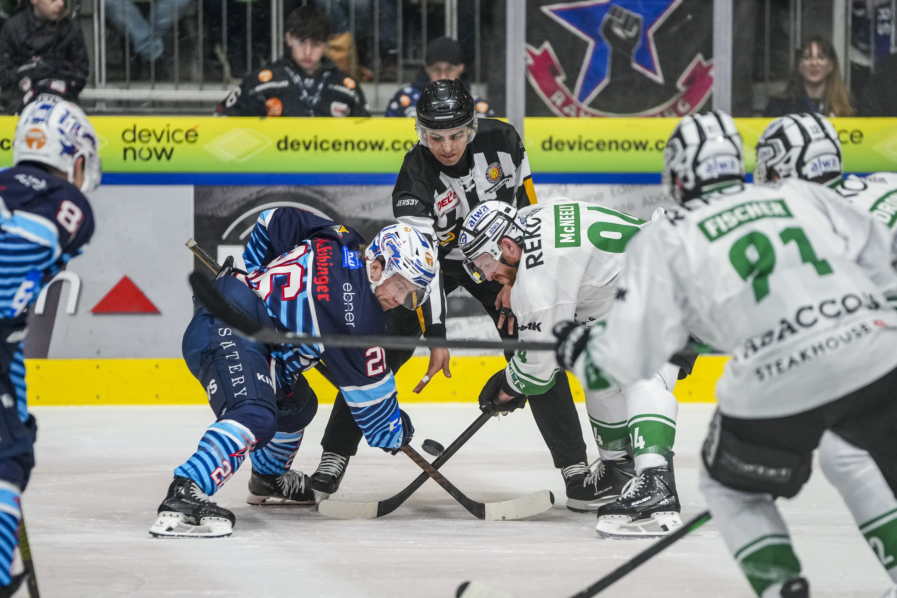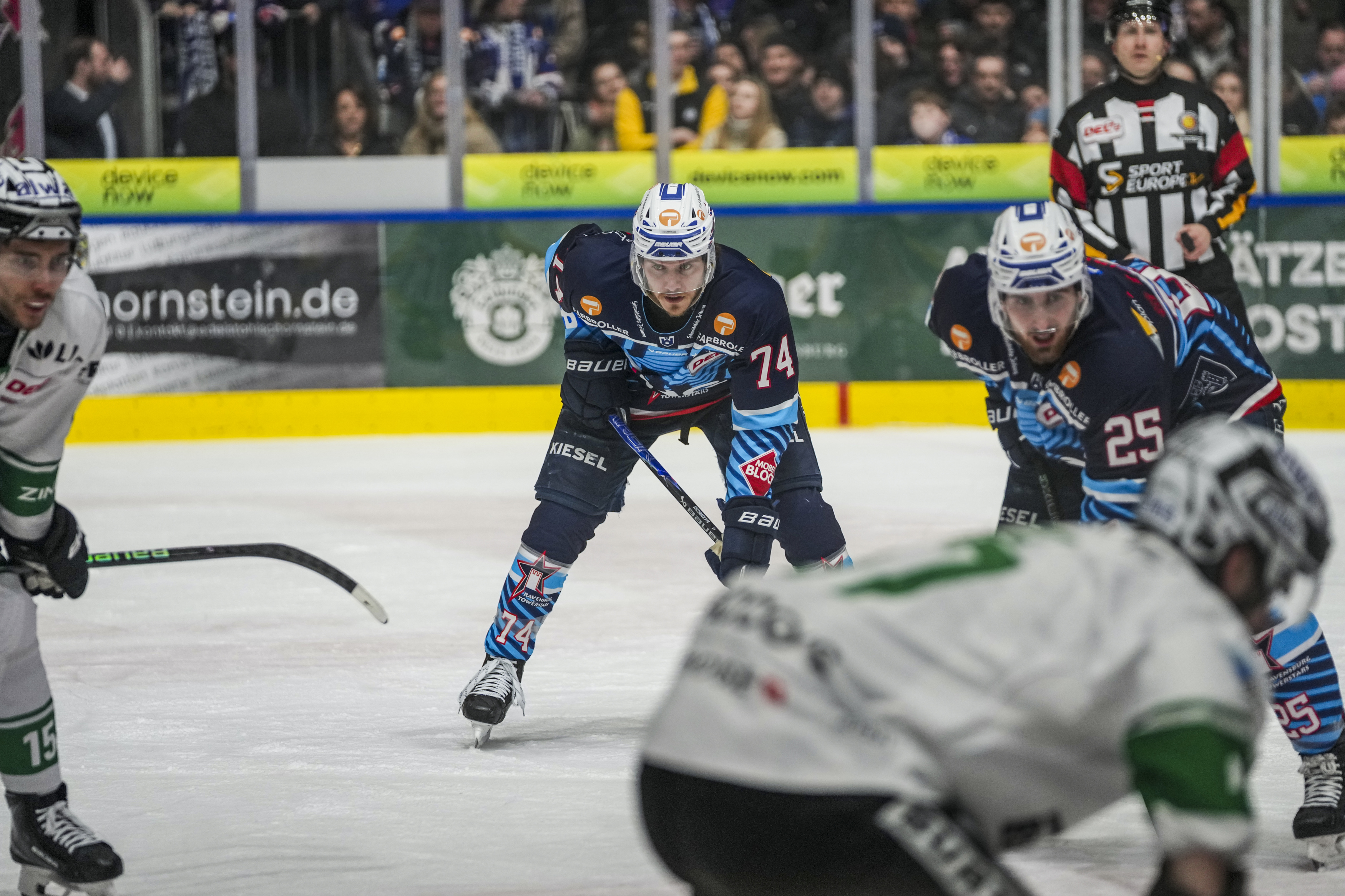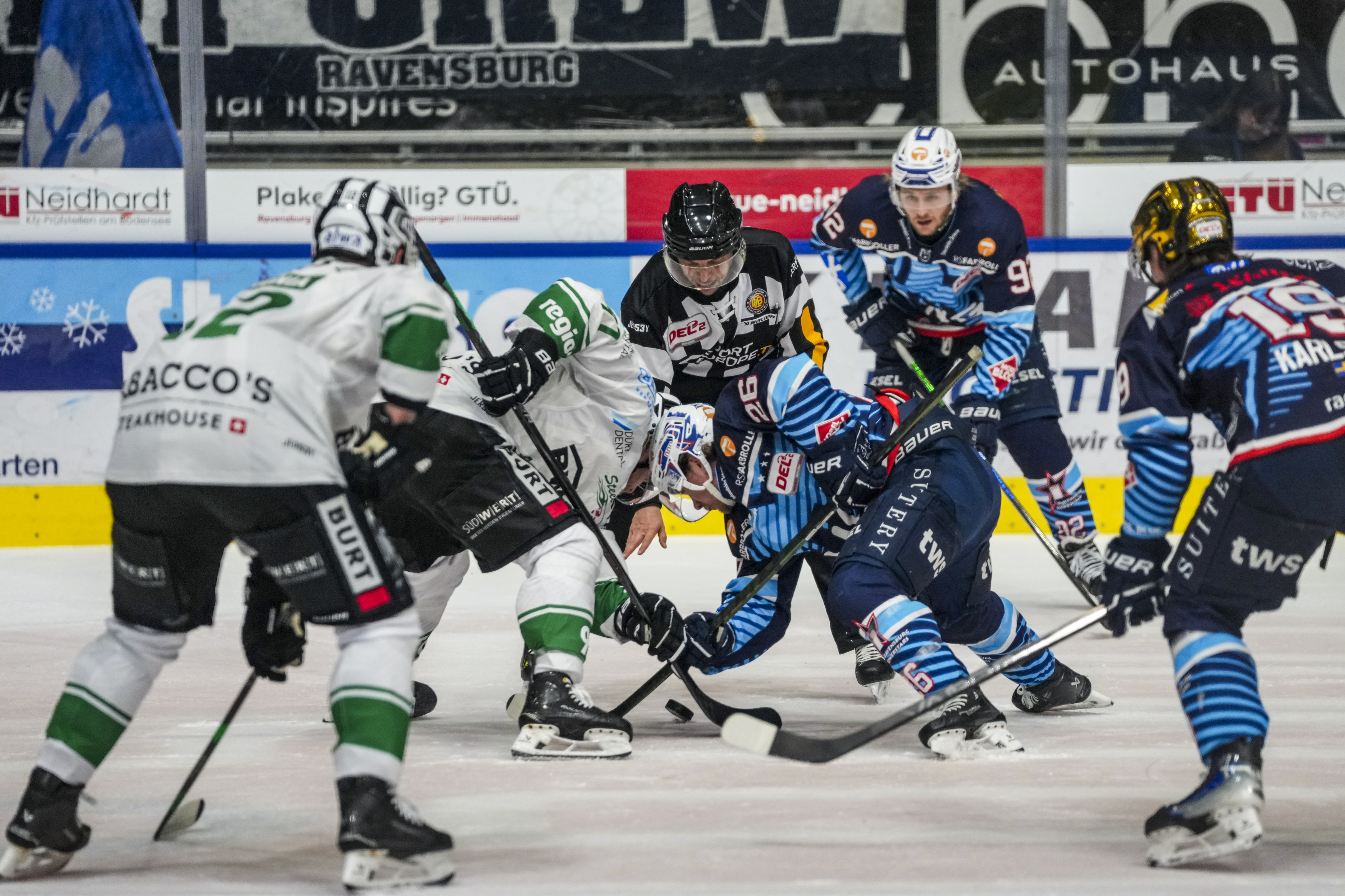 Starting Six Towestars, GER, Ravensburg Towerstars vs. Bietigheim Steelers, Eishockey, DEL2, Spielzeit 2025/2026, Playoff Viertelfinale, Spiel 5, 27.03.26 Foto: Maximilian Rist , GER, Ravensburg Towerstars vs. Bietigheim Steelers, Eishockey, DEL2, Spielzeit 2025/2026, Playoff Viertelfinale, Spiel 5, 27.03.26 Foto: Maximilian Rist