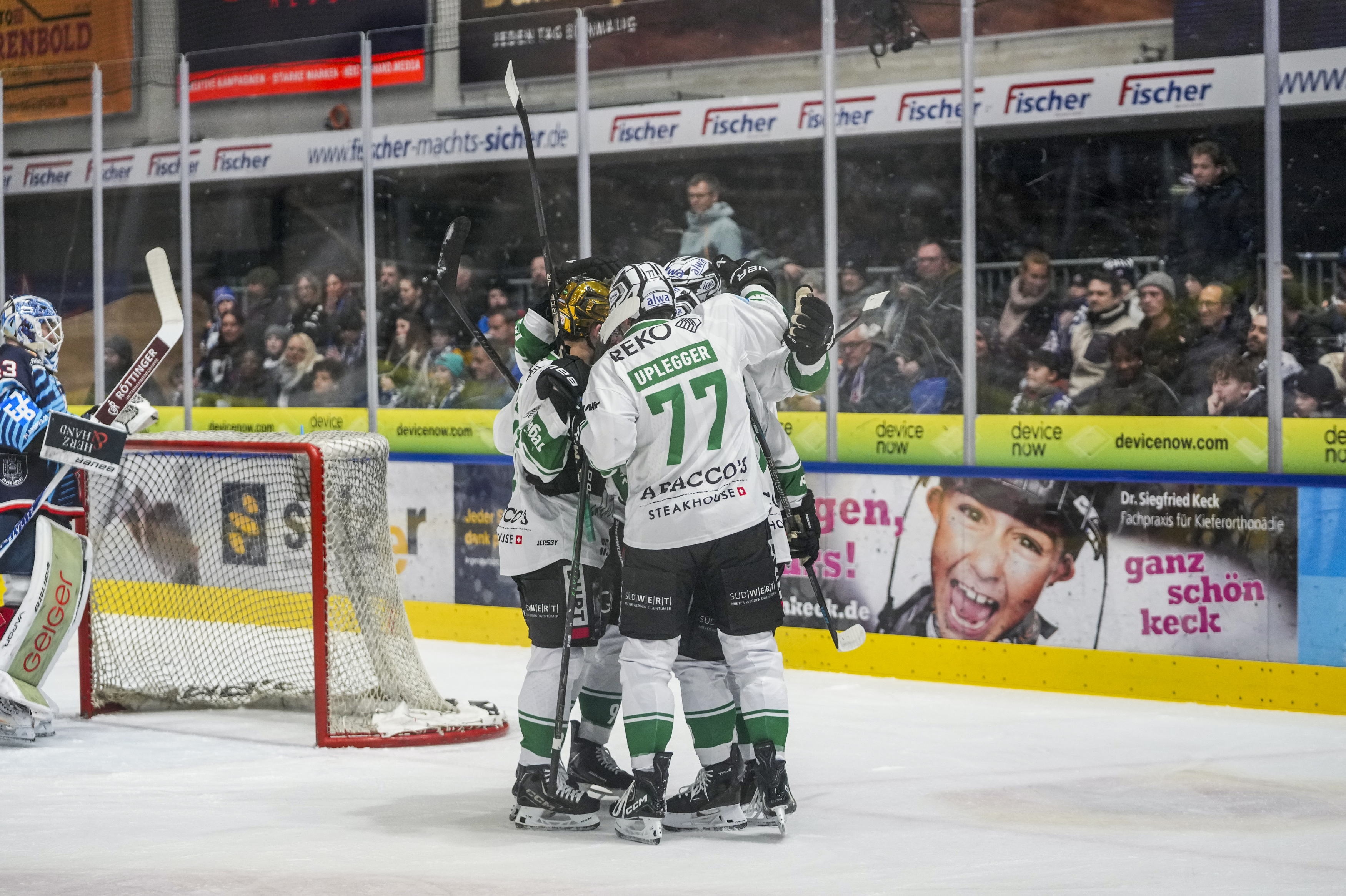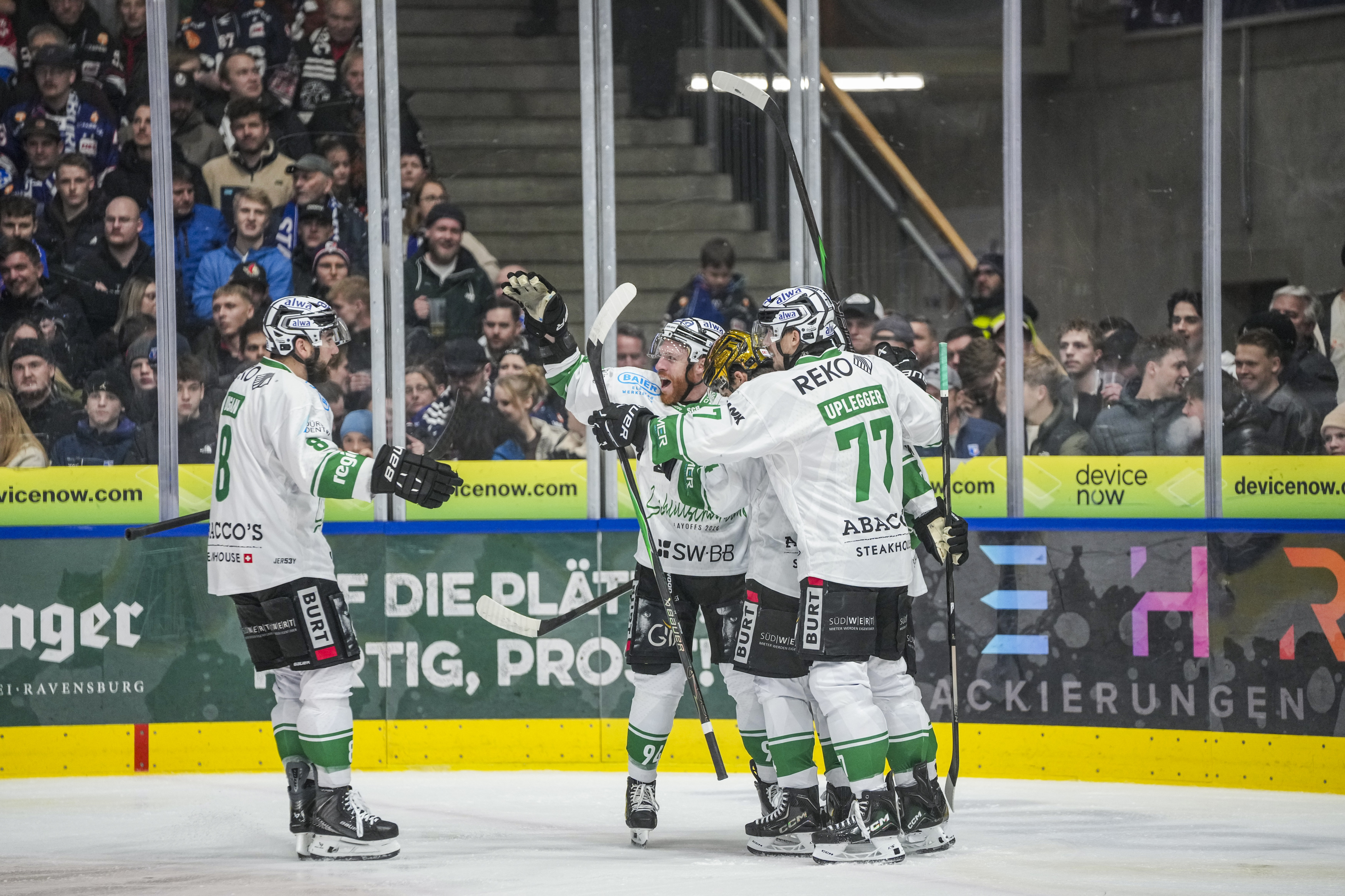 Torjubel zum 0:2, GER, Ravensburg Towerstars vs. Bietigheim Steelers, Eishockey, DEL2, Spielzeit 2025/2026, Playoff Viertelfinale, Spiel 5, 27.03.26 Foto: Maximilian Rist , GER, Ravensburg Towerstars vs. Bietigheim Steelers, Eishockey, DEL2, Spielzeit 2025/2026, Playoff Viertelfinale, Spiel 5, 27.03.26 Foto: Maximilian Rist