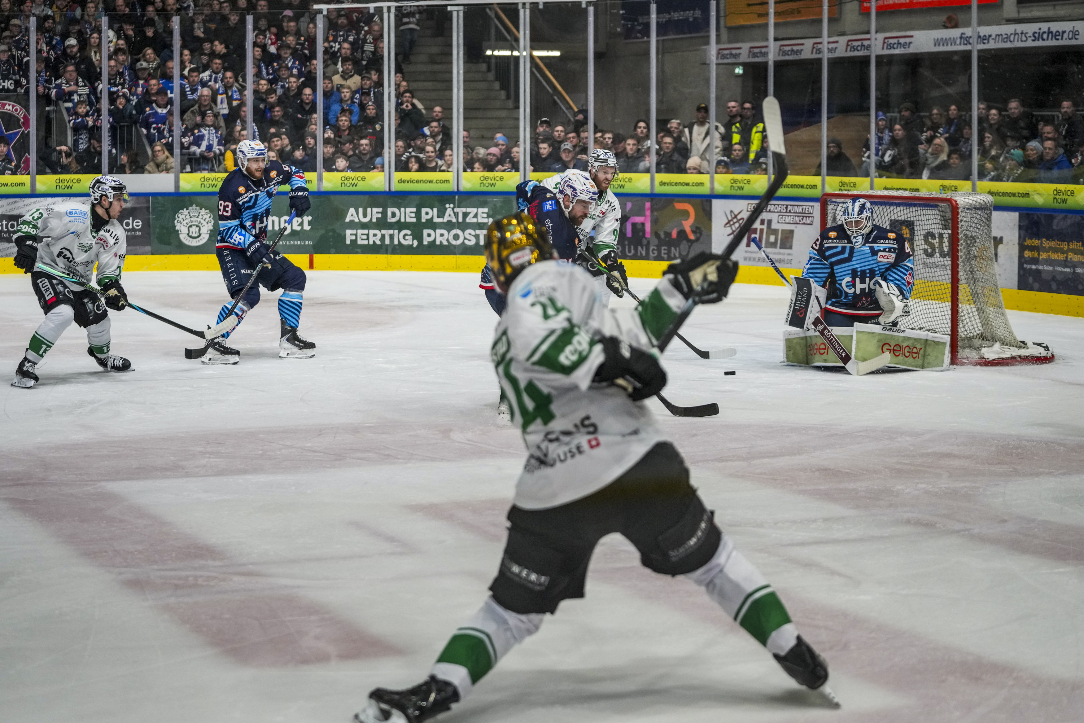 Tor zum 0:1 von Cole Fonstad (Bietigheim Steelers, #24), GER, Ravensburg Towerstars vs. Bietigheim Steelers, Eishockey, DEL2, Spielzeit 2025/2026, Playoff Viertelfinale, Spiel 5, 27.03.26 Foto: Maximilian Rist , GER, Ravensburg Towerstars vs. Bietigheim Steelers, Eishockey, DEL2, Spielzeit 2025/2026, Playoff Viertelfinale, Spiel 5, 27.03.26 Foto: Maximilian Rist