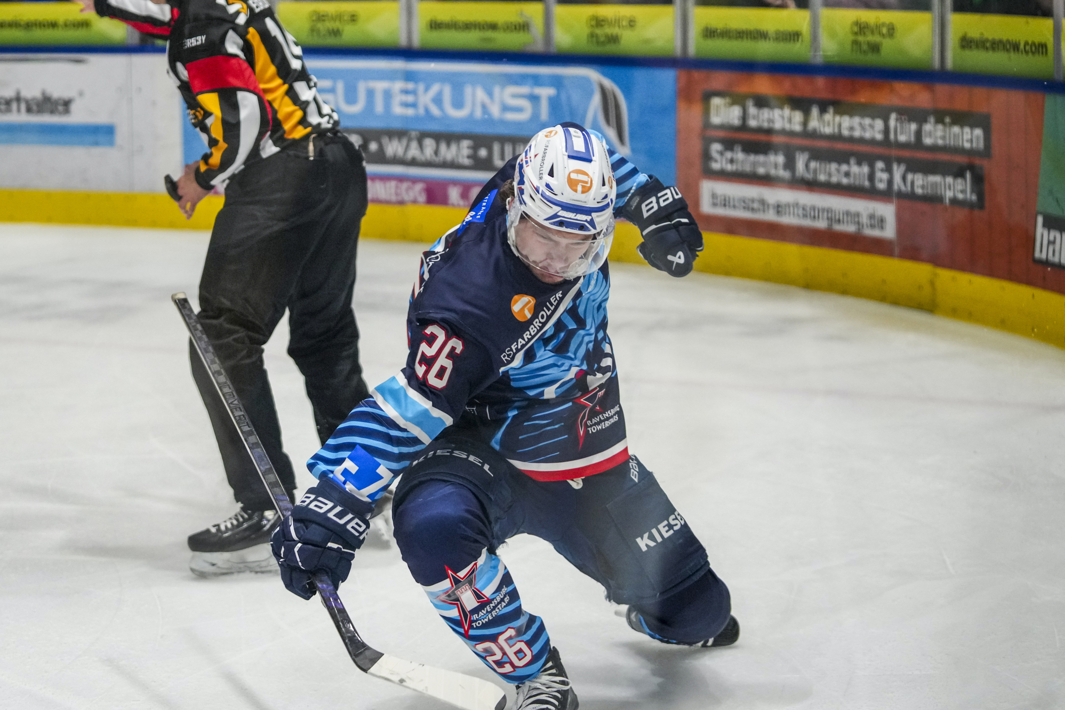 Marvin Schmid (Ravensburg Towerstars, #13), GER, Ravensburg Towerstars vs. Bietigheim Steelers, Eishockey, DEL2, Spielzeit 2025/2026, Playoff Viertelfinale, Spiel 5, 27.03.26 Foto: Maximilian Rist , GER, Ravensburg Towerstars vs. Bietigheim Steelers, Eishockey, DEL2, Spielzeit 2025/2026, Playoff Viertelfinale, Spiel 5, 27.03.26 Foto: Maximilian Rist