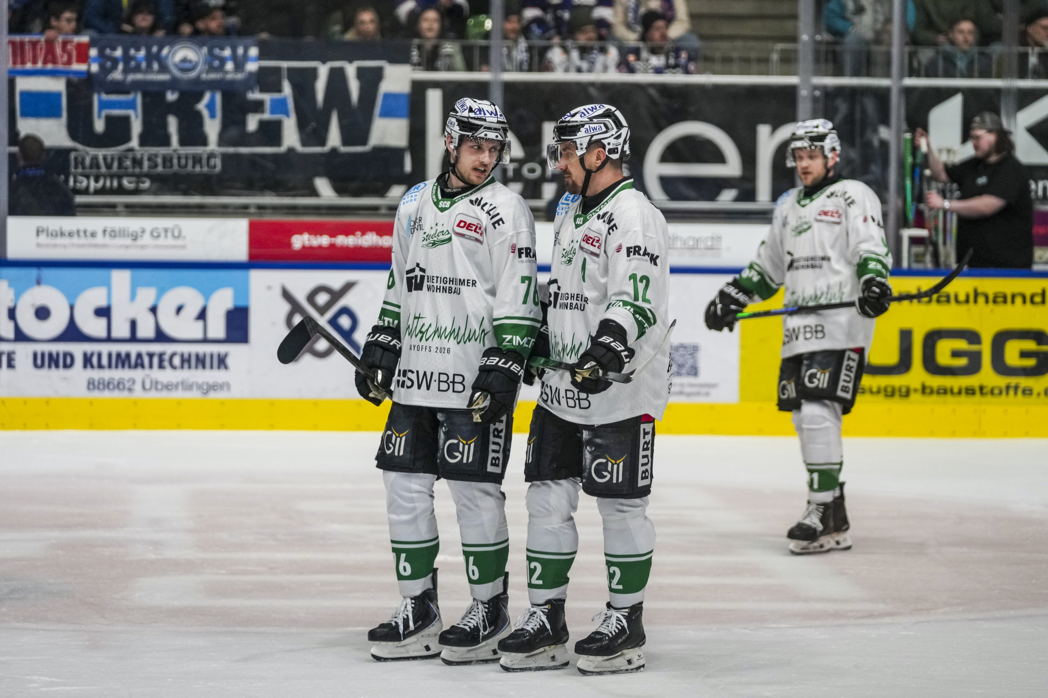Austausch Maximilian Soell (Bietigheim Steelers, #76) und Pawel Dronia (Bietigheim Steelers, #12), GER, Ravensburg Towerstars vs. Bietigheim Steelers, Eishockey, DEL2, Spielzeit 2025/2026, Playoff Viertelfinale, Spiel 5, 27.03.26 Foto: Maximilian Rist , GER, Ravensburg Towerstars vs. Bietigheim Steelers, Eishockey, DEL2, Spielzeit 2025/2026, Playoff Viertelfinale, Spiel 5, 27.03.26 Foto: Maximilian Rist