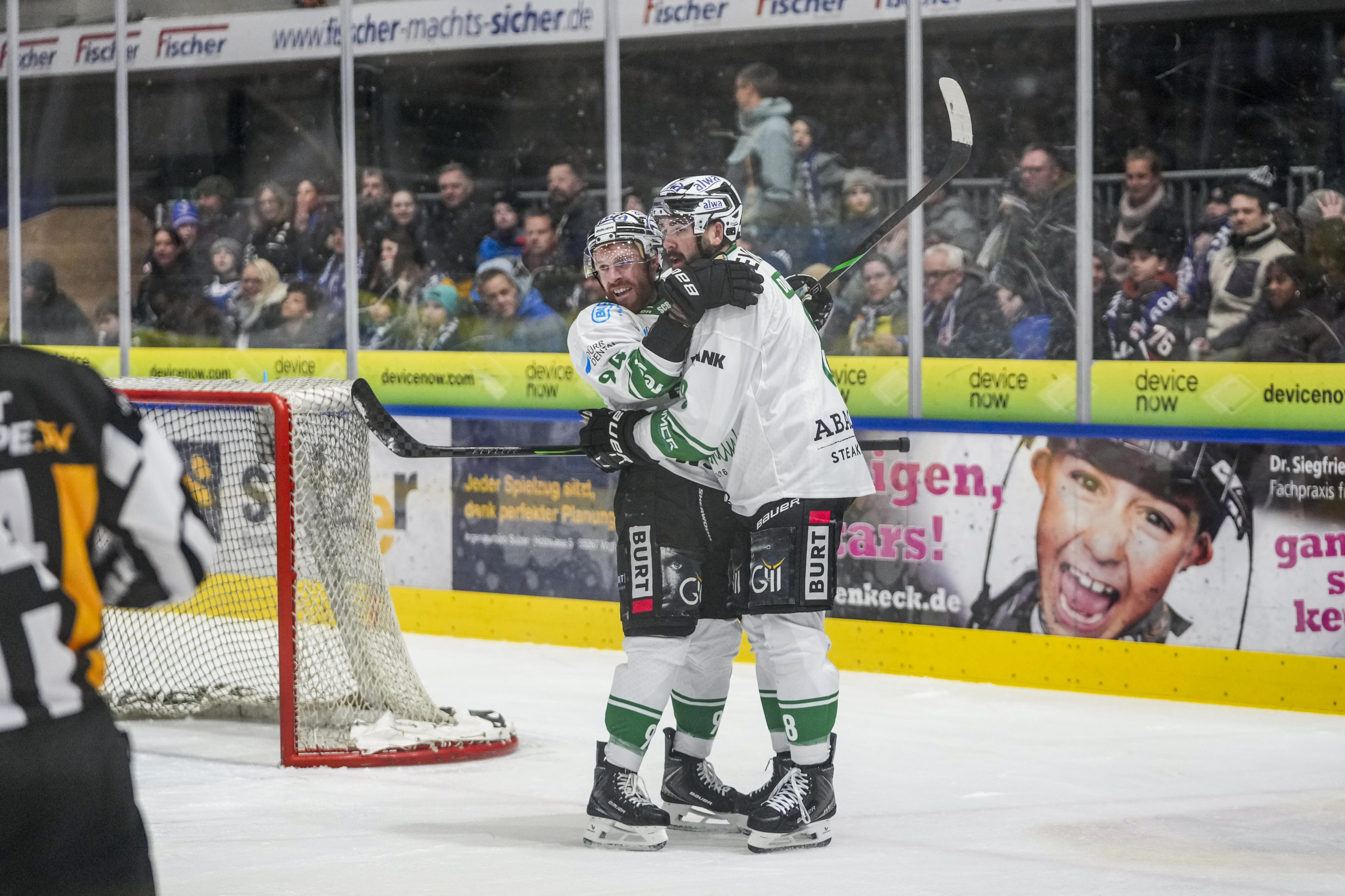 Torjubel zum 0:2 von Tyler McNeely (Bietigheim Steelers, #94) und Jack Dugan (Bietigheim Steelers, #8), GER, Ravensburg Towerstars vs. Bietigheim Steelers, Eishockey, DEL2, Spielzeit 2025/2026, Playoff Viertelfinale, Spiel 5, 27.03.26 Foto: Maximilian Rist , GER, Ravensburg Towerstars vs. Bietigheim Steelers, Eishockey, DEL2, Spielzeit 2025/2026, Playoff Viertelfinale, Spiel 5, 27.03.26 Foto: Maximilian Rist