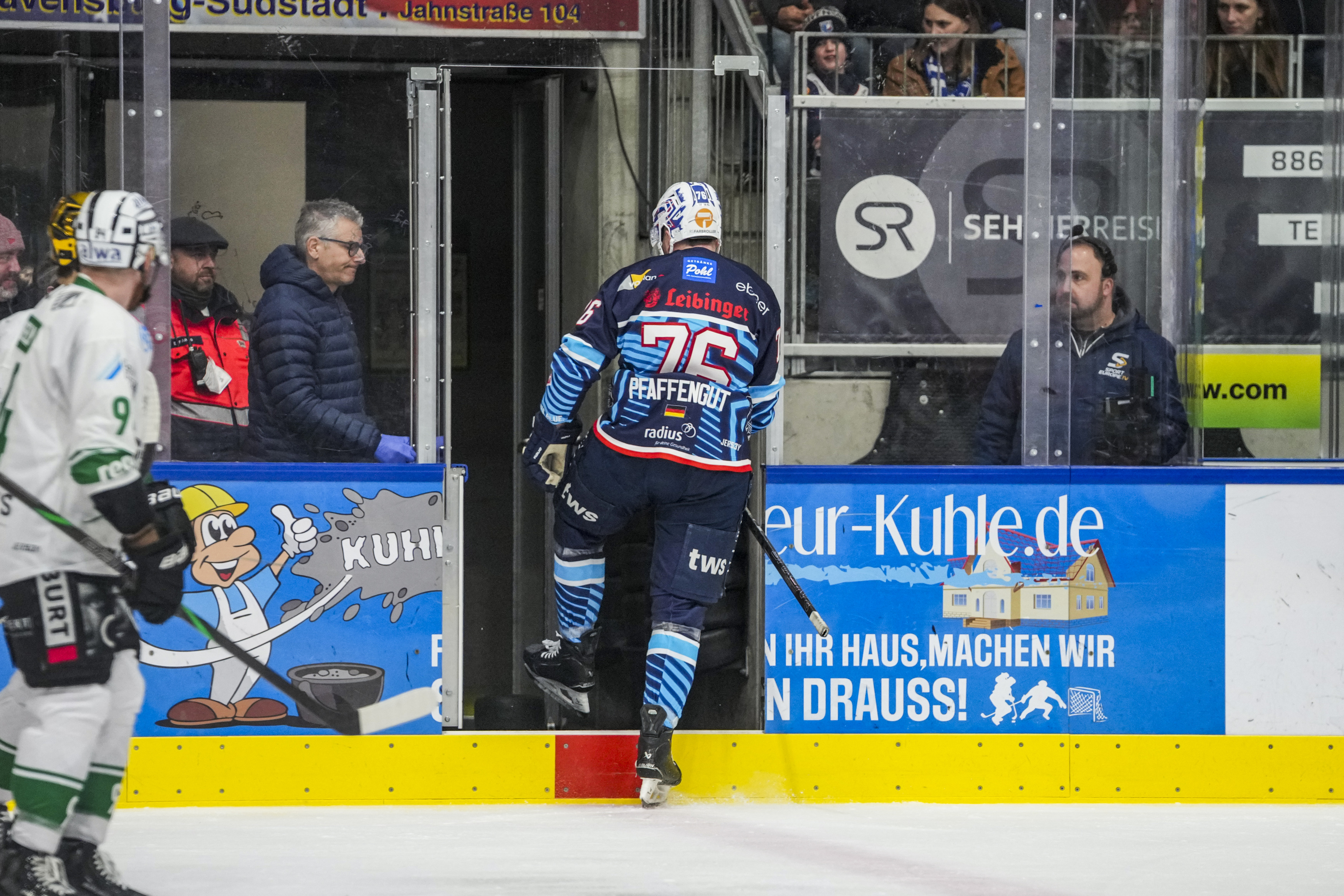 Denis Pfaffengut (Ravensburg Towerstars, #76) nach Spielstrafe, GER, Ravensburg Towerstars vs. Bietigheim Steelers, Eishockey, DEL2, Spielzeit 2025/2026, Playoff Viertelfinale, Spiel 5, 27.03.26 Foto: Maximilian Rist , GER, Ravensburg Towerstars vs. Bietigheim Steelers, Eishockey, DEL2, Spielzeit 2025/2026, Playoff Viertelfinale, Spiel 5, 27.03.26 Foto: Maximilian Rist