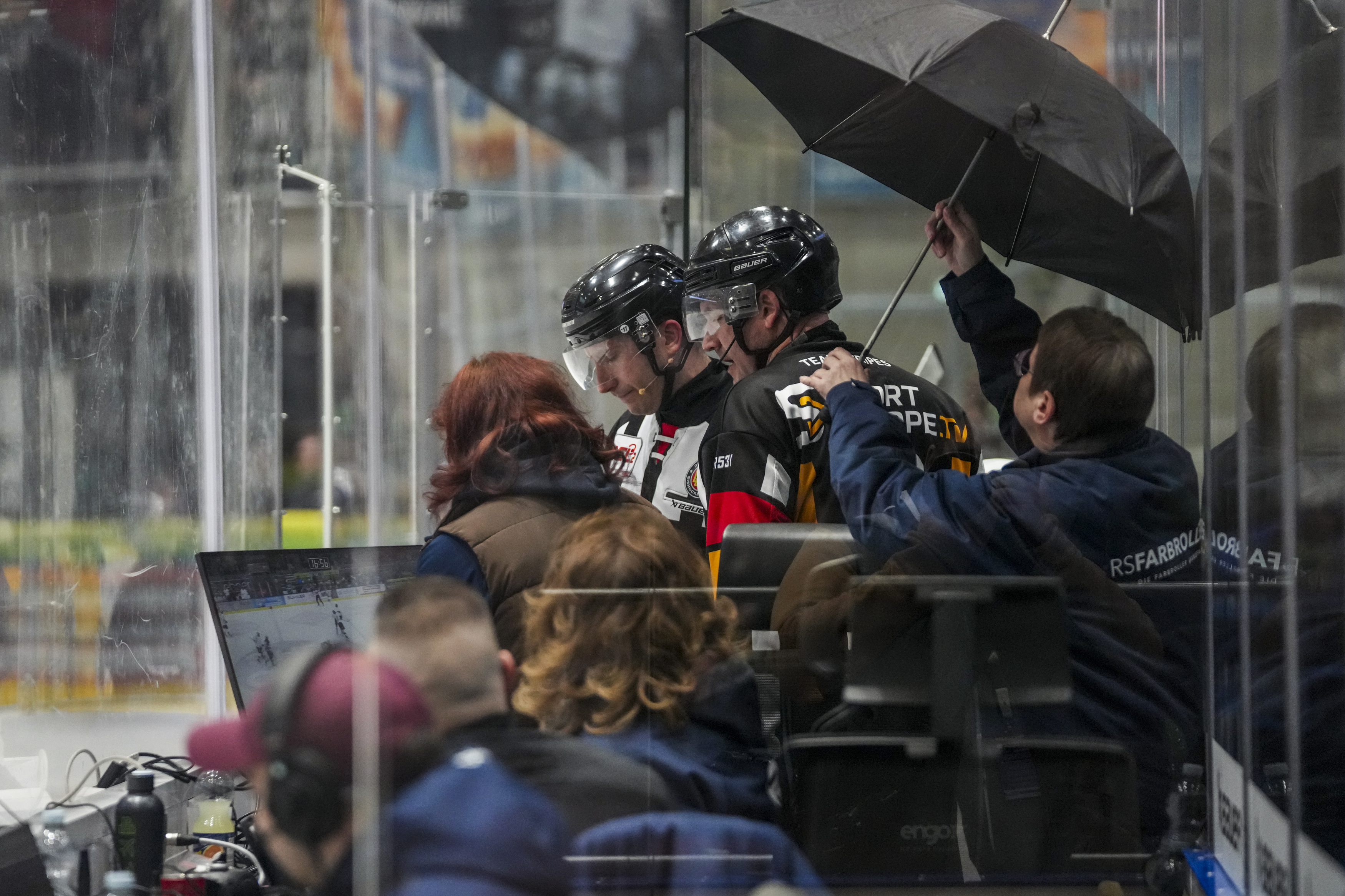 Schiedsrichter beim Videobeweis, GER, Ravensburg Towerstars vs. Bietigheim Steelers, Eishockey, DEL2, Spielzeit 2025/2026, Playoff Viertelfinale, Spiel 5, 27.03.26 Foto: Maximilian Rist , GER, Ravensburg Towerstars vs. Bietigheim Steelers, Eishockey, DEL2, Spielzeit 2025/2026, Playoff Viertelfinale, Spiel 5, 27.03.26 Foto: Maximilian Rist